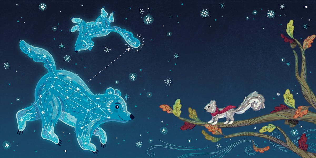 Throughout my career, I’ve had the pleasure of introducing the constellations to curious youngsters, whose imaginations are well prepared to bring them to life. I’ve also imagined and even dreamed about ways to modernise them, to reflect the ongoing stories we tell about the Universe—both scientific and personal. With this goal in mind, I’ve been quietly publishing my own star lore in a series of rhyming picture books for young children. The short stories, beautifully illustrated by Anni Betts, introduce various creatures among the constellations who take on new roles as educators.