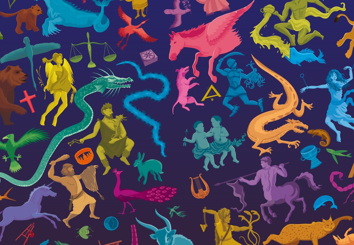 Across the ages, the night sky has engendered inspiration. Our ancestors filled it with stories, and translated its incorporeal quality through millennia of poetry, visual arts and music. Debussy made moonlight sing, Van Gogh made starlight dance, and on countless unrecorded occasions, lonely pilgrims and seafarers conversed with the tapestry of heroes and creatures gazing back down at them – old and familiar friends, introduced to them by their elders. Once drenched in mythology, now scrutinised with technology, the night sky has lost some of its mystery but none of its magic, as storytelling remains deeply embedded at the heart of astronomy. Today we tell scientific stories about the earliest moments of cosmic history, of black holes and alien worlds. Our new stories are grand and yet also intimate, connecting our lives directly to the extraordinary lives of stars through the very atoms we are made of. Still, the constellations continue to enchant novice stargazers and make the night sky effortlessly memorable. Their mythological tales employ themes and humour that are less relevant to us today, but the characters are no less fascinating.